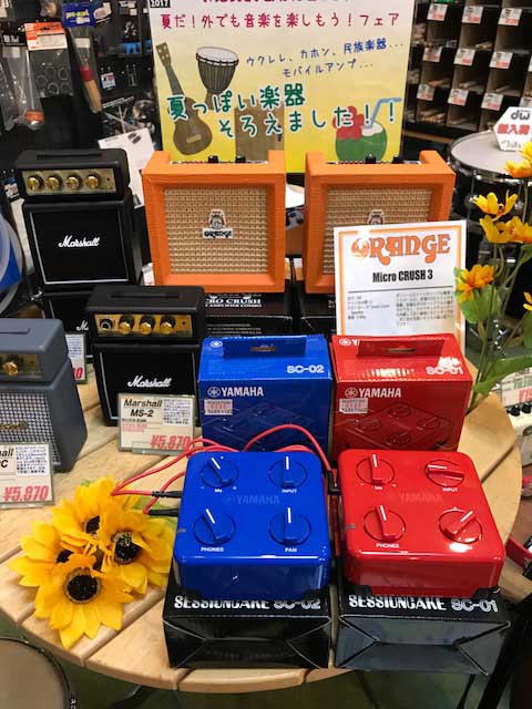 ガチャポンが出来たり、エフェクターのナイスな小物が貰えたり、夏らしい楽器が並んだり、