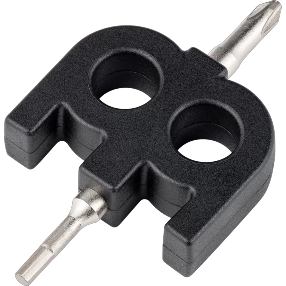 カホンの弦の張り具合や、フロントプレートの調整が可能となるマルチチューニングキーです。プラスドライバーの面と六角レンチ(3mm)の面があり、デザイン性と実用性を重視し、MEINLロゴデザインをあしらったグリップ部を採用しています。カホンバッグ等に入れておくとなにかと便利な、紛失しにくいキーレンチです。