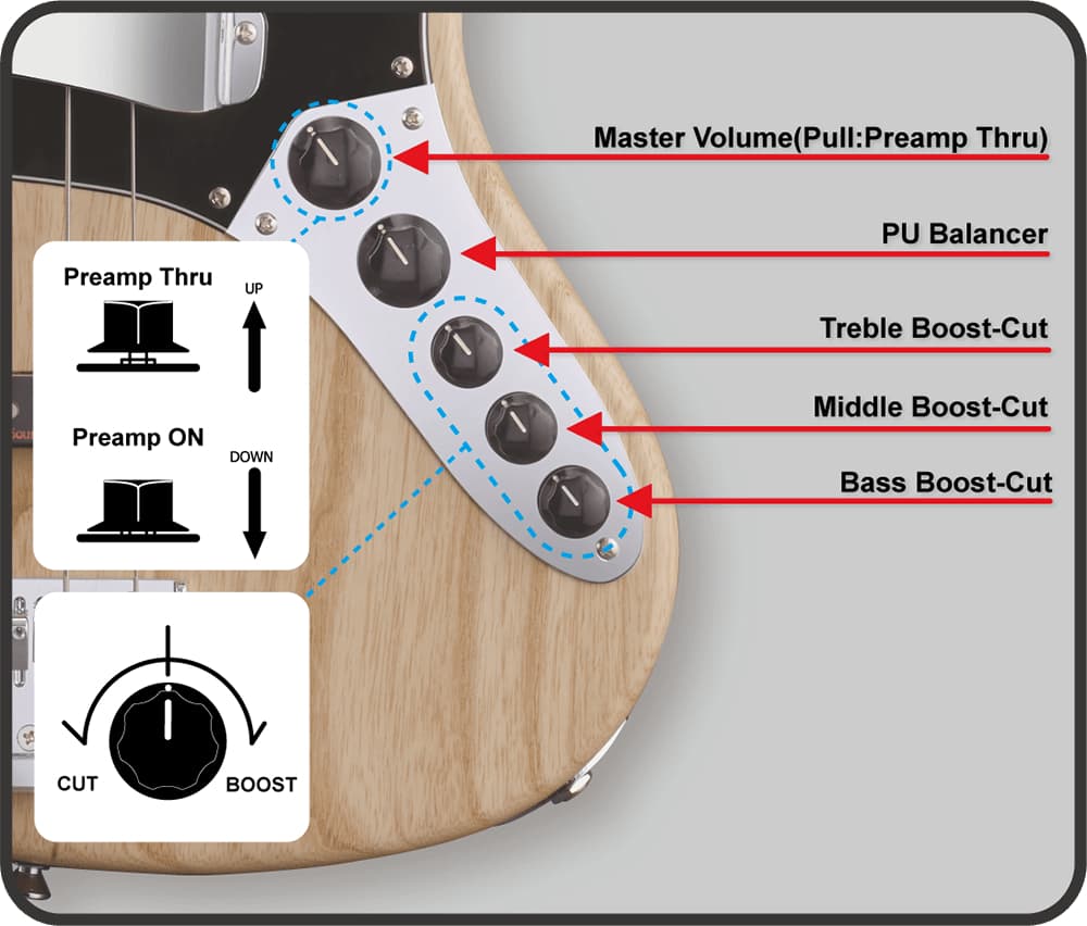 - Master Volume (w/Preamp Thru SW), PU Balancer, 3 BAND EQ (ESP CINNAMON)
