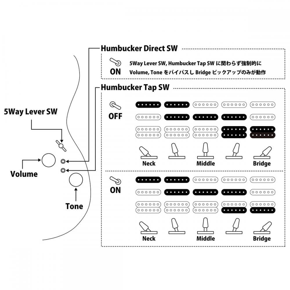 - 1Volume, 1Tone, 5Way Lever SW, 2 Mini Tricky SW