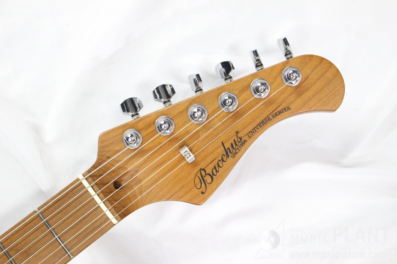 ローステッドメイプルとはメイプルを高温で加熱処理して材の中の水分や油分を揮発させることにより剛性を高めた材。ネックに使用されるとその効果は安定性だけでなくサウンドにも及び、豊かな生鳴りと経年変化したビンテージのようなこなれたトーンを生み出します。高級機種で使われることの多いこの本格派仕様をリーズナブルな価格帯に落とし込んだBacchusの新しい製品ラインナップです。
