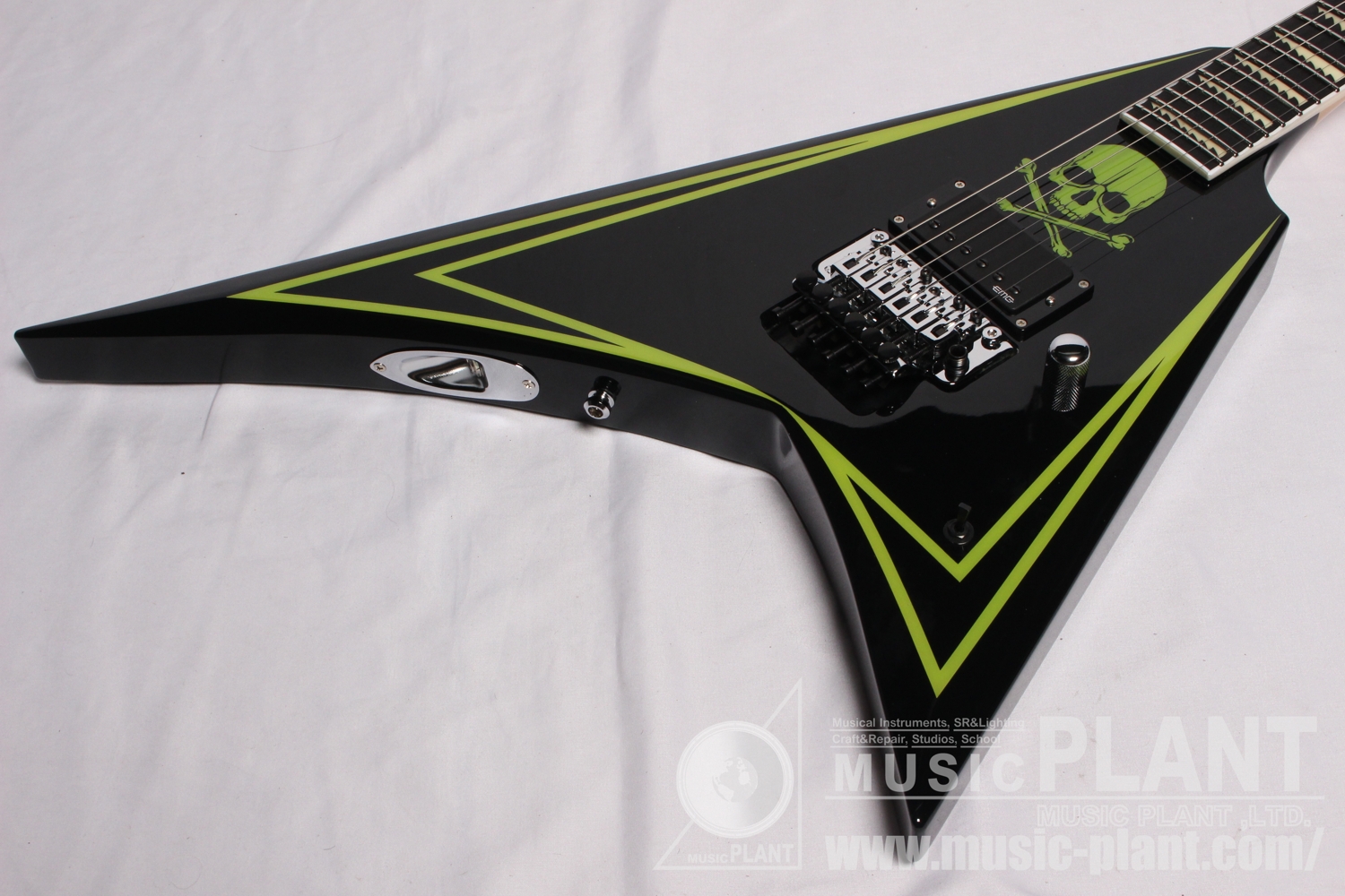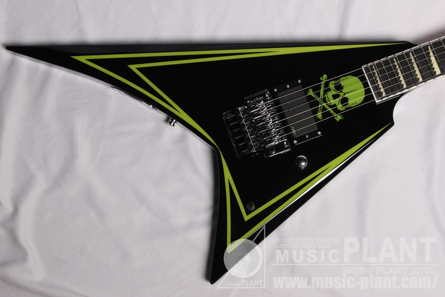 - Black with Lime Green Pinstripe & Skull