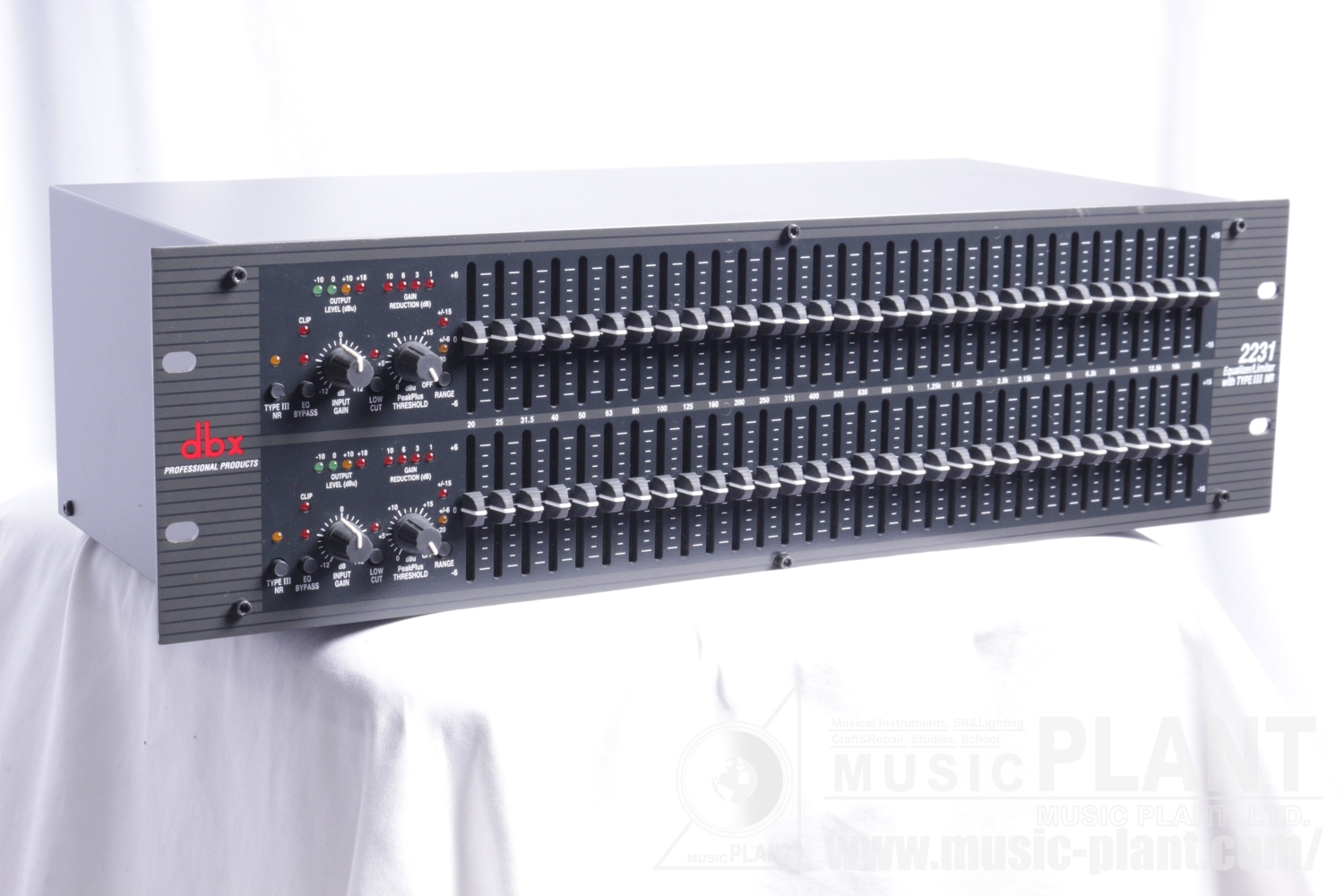 3Uサイズ、2ch/31bandのグラフィックEQです。リアパネルはXLR,1/4"フォーン,ターミナルどれも可能です。停電時には入出力をバイパスするリレー回路を搭載していますのでEQで音が途切れることはありません。上位機種のiEQにも採用のゴムタイプのつまみが操作性と高級感を担ってます。TYPE IIIノイズリダクション搭載し、SN比を最大20dB改善。