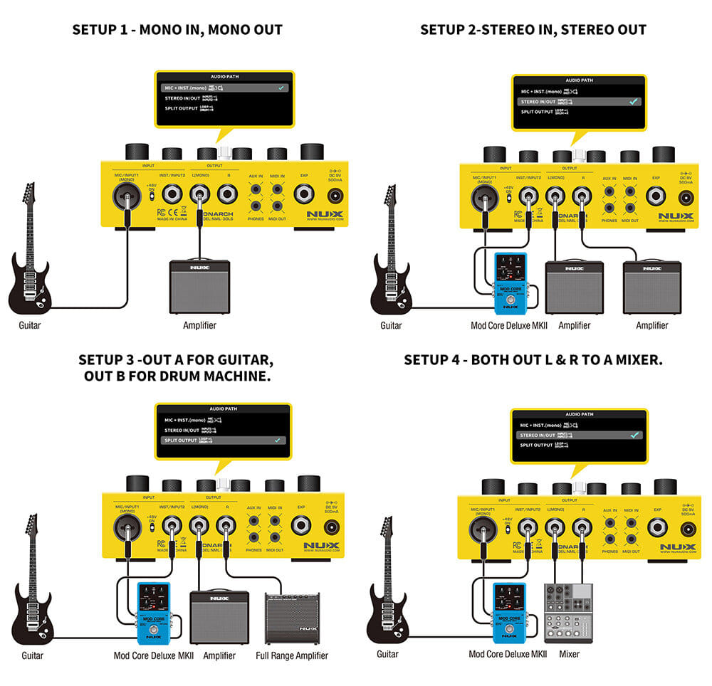 Effect: Octave, Booster, Amp Simulation, Reverb (for drum or mic/instrument of input 1)