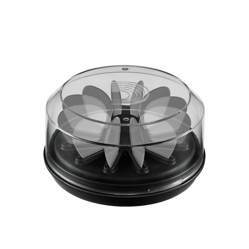 Pick Holder 360 は、お気に入りのピック 12 枚をシンプルに整理してすぐに取り出すことのできるアイテムです。滑らかなボールベアリング設計の回転式で、お気に入りのピックを素早く簡単に見つけられます。透明な蓋はベース部分の下に取り付けられるスタンド兼用で、追加のピック収納スペースとしても機能します。片手でピックを取り出すには、人差し指を中央のハブに置いて親指と中指でピックを引き抜いてください。コレクターズアイテムのピックを展示するのにも最適です。