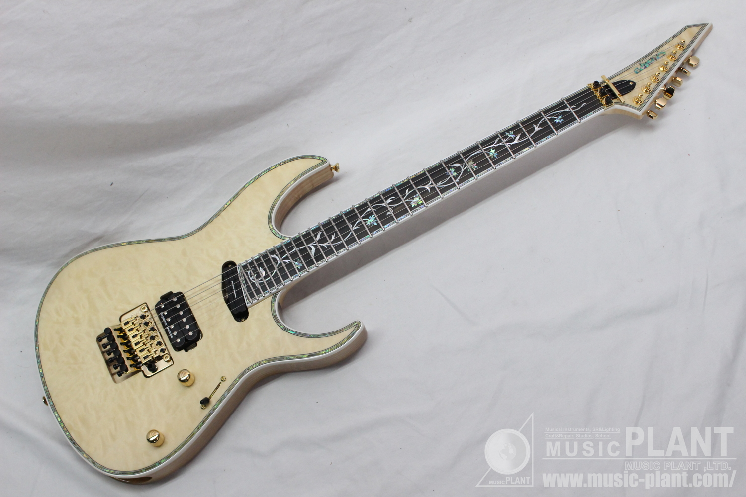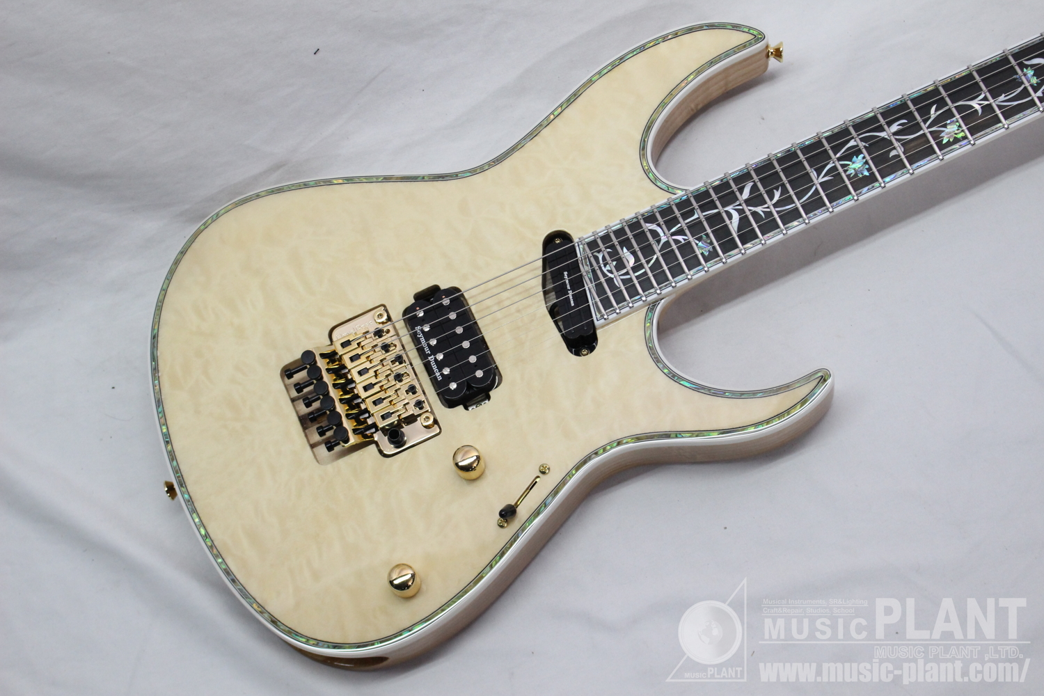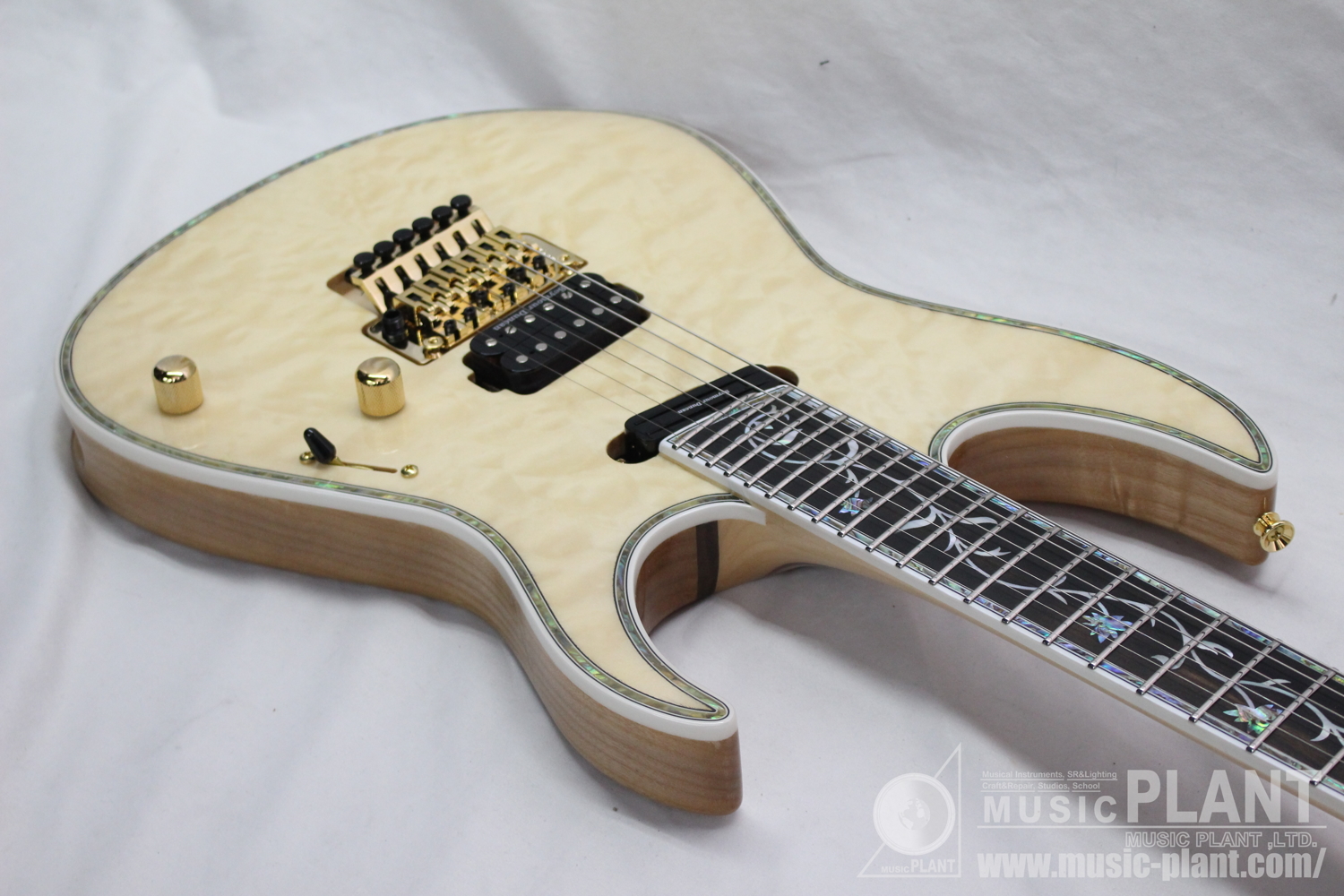 - (Top) Quilted Maple, (Back) Ash w/abalon & White Binding