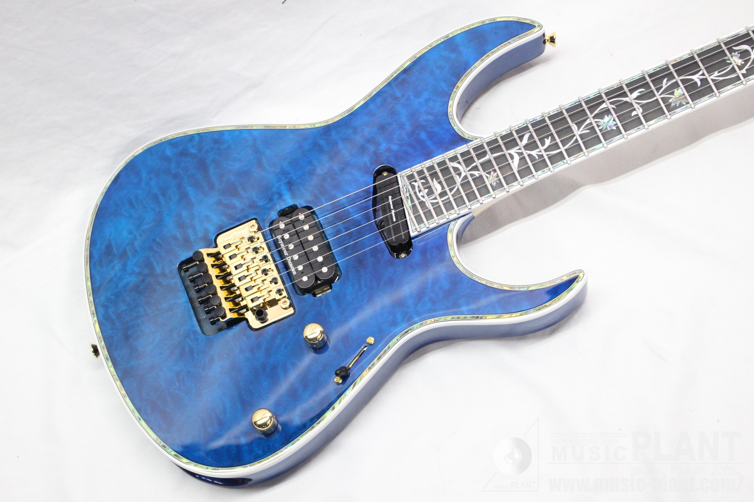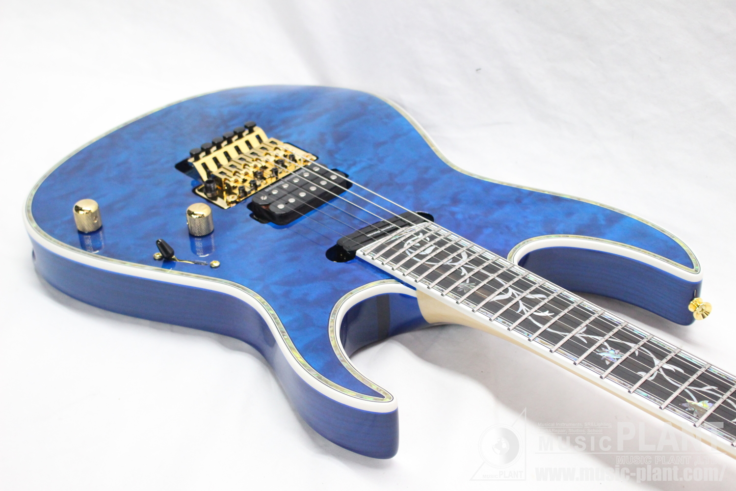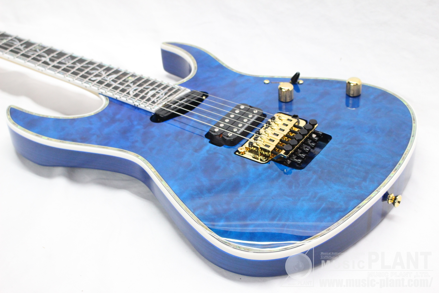 - (Top) Quilted Maple, (Back) Ash w/abalon & White Binding