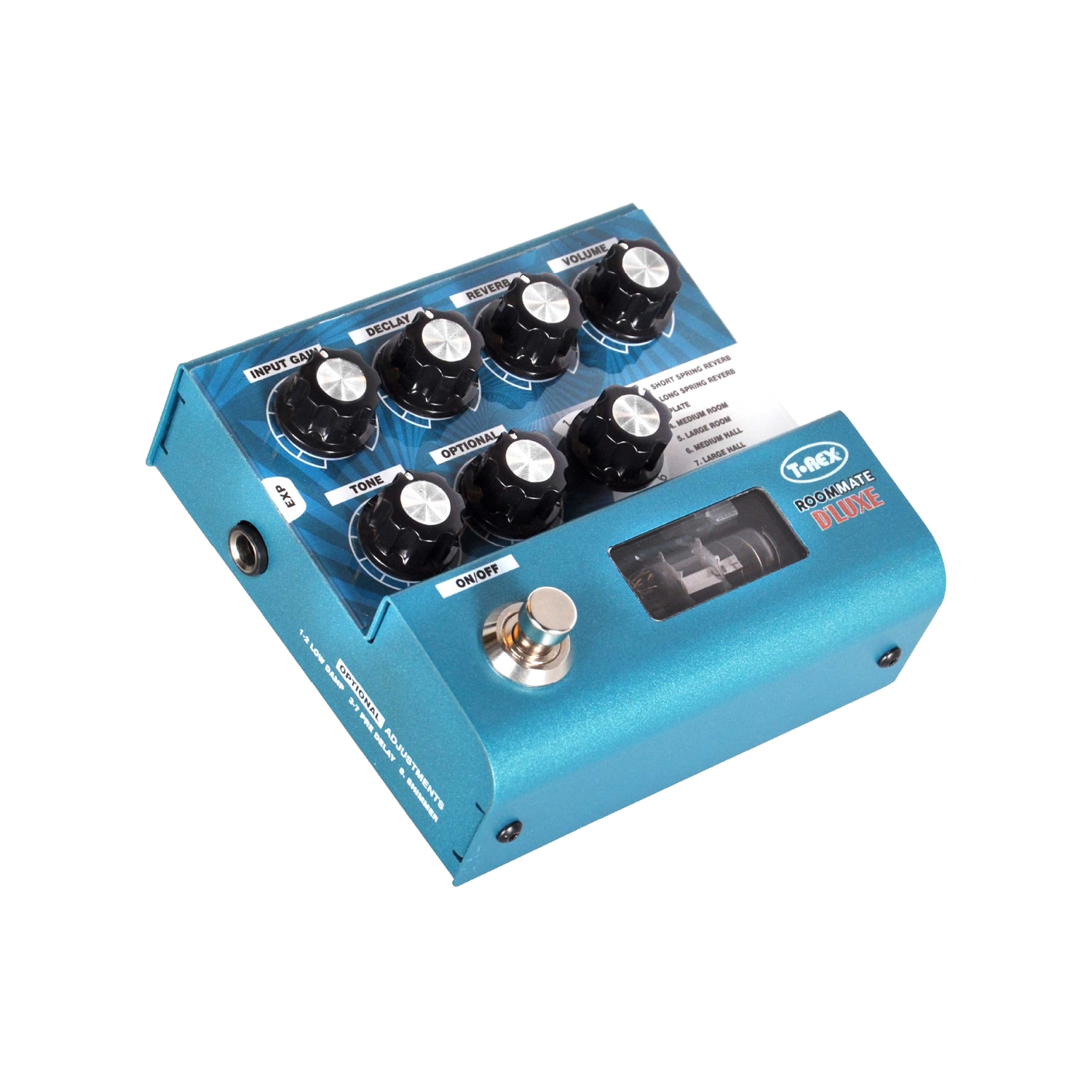 - 8つのアルゴリズムを搭載したステレオデジタルリバーブペダル