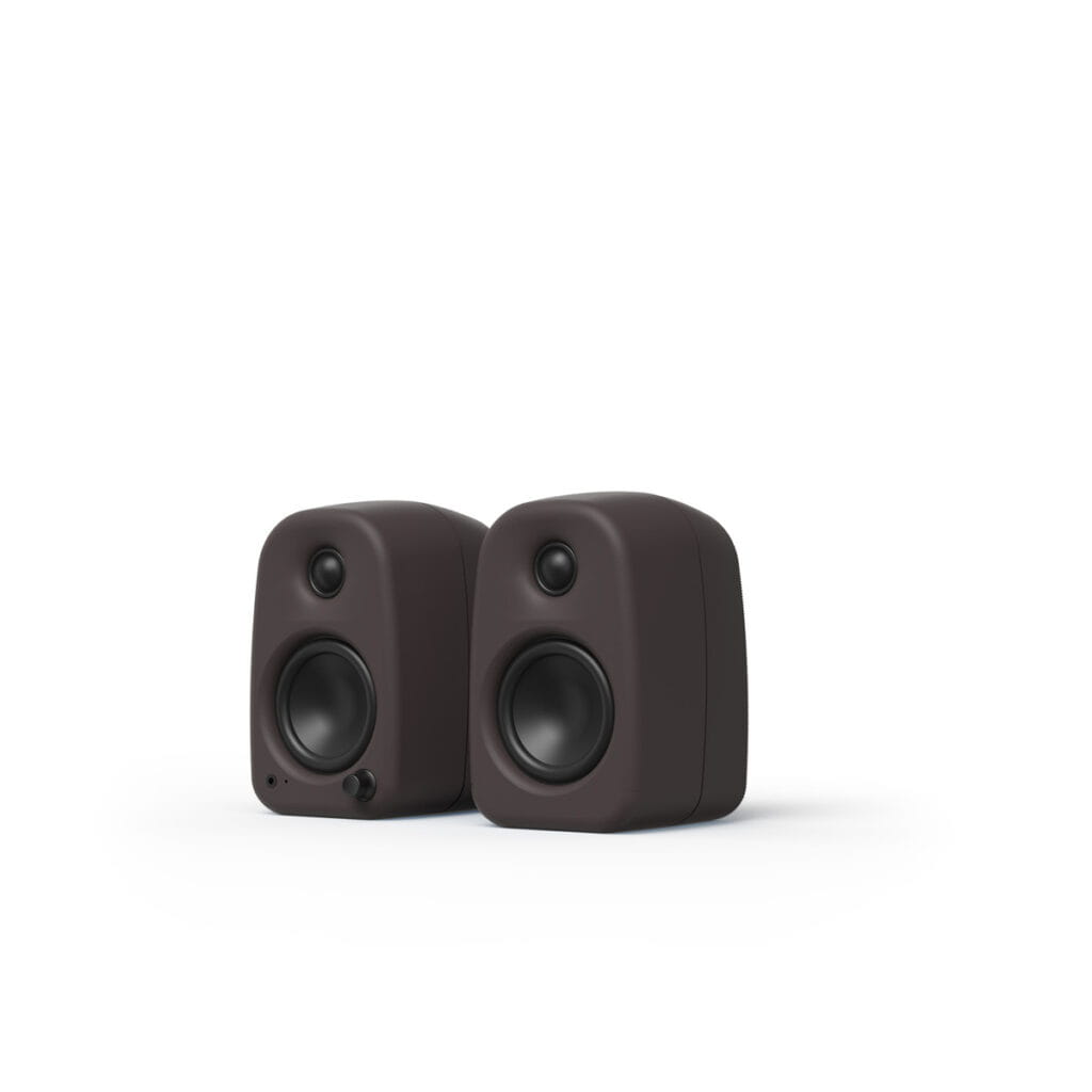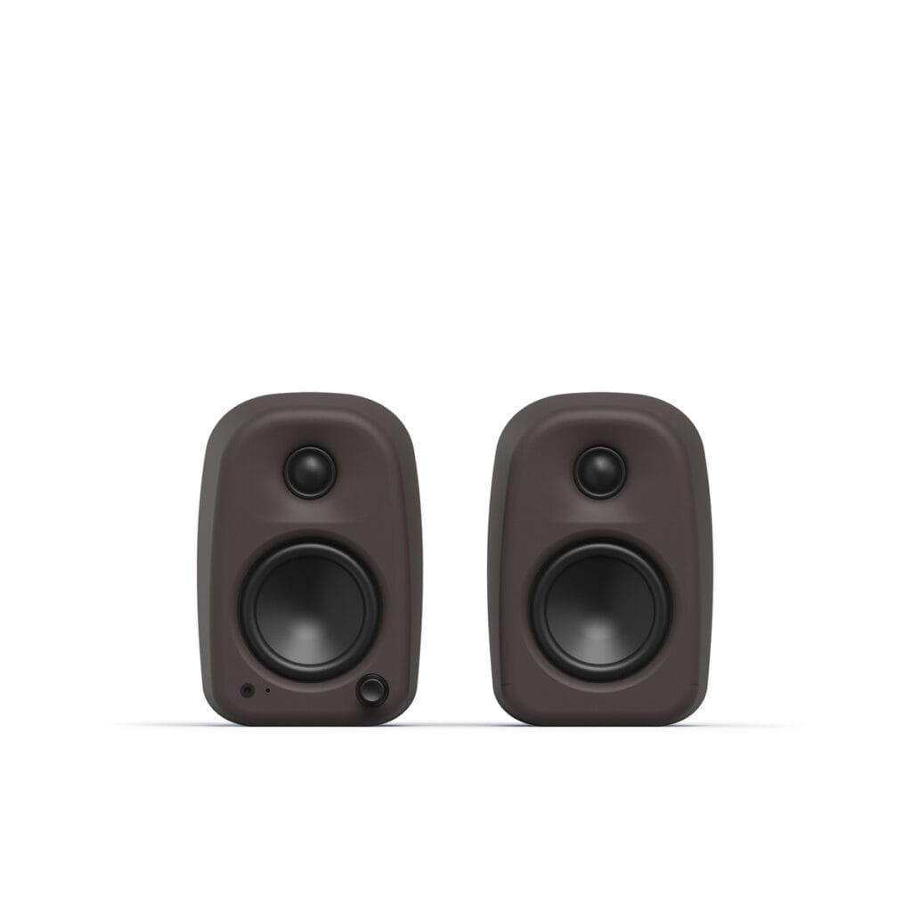 設置場所を選ばないコンパクトな遊び心のあるフォルムと、誰もが迷わない直感的な操作性を両立した、コンパクトデスクトップスピーカー。