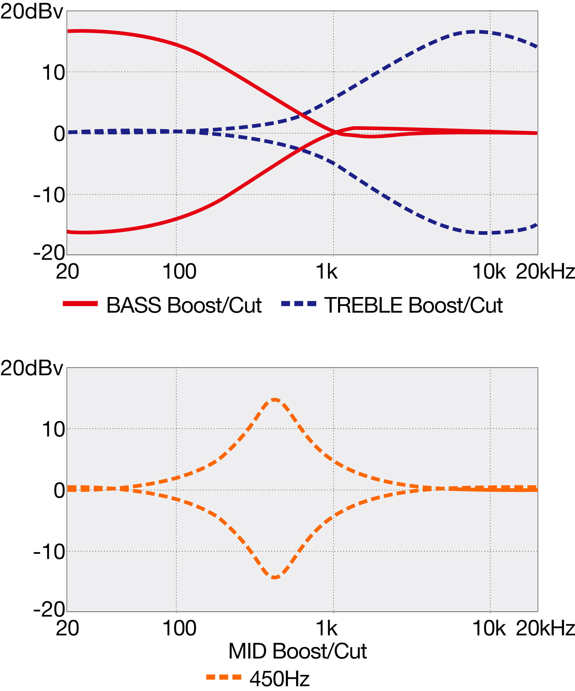- 1 Volume, Balancer, Bass, Mid, Treble(Passive Tone Control), EQ Bypass Switch