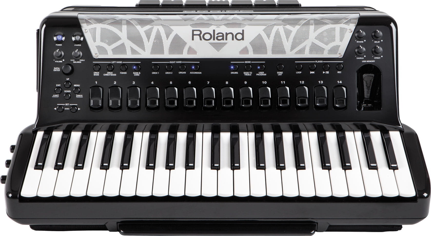 - 新技術「ダイナミック・ベローズ・ビヘイビアー」により、蛇腹の表現力が飛躍的にアップ。アコースティック・アコーディオン同様の洗練されたベロージングを実現。