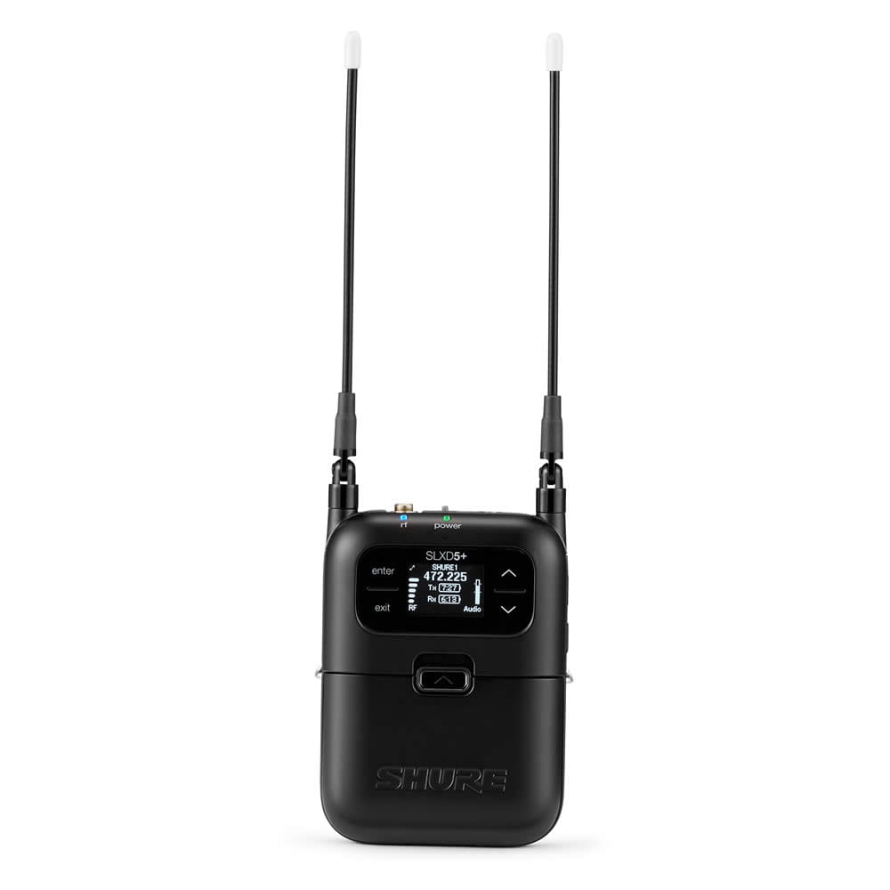 - Up to 8 hours (SLXD1+)/ up to 5.5 hours (SLXD5+) of use from either 2 AA batteries (included) or optional Shure SB903 Li-ion rechargeable batteries and charging accessories