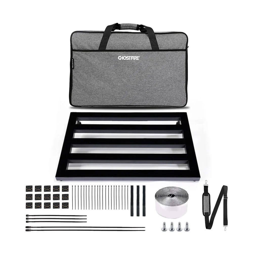 Ghost Fire Sシリーズペダルボードは、ライブステージでの使用を念頭に設計されたペダルボードです。超軽量かつ耐久性に優れたアルミ合金を使用し、ボード表面には面ファスナー(ループ)が貼り付けられています。付属の面ファスナー(フック)をエフェクターに取り付ければ、すぐにボードに設置することができます。