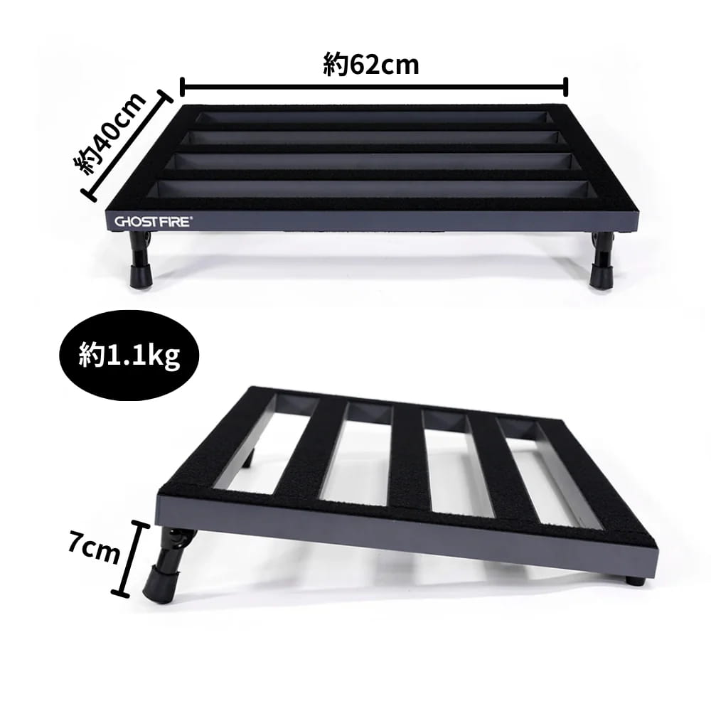 ボードサイズは約62×40cm、1.1kgと軽量で、10~18個程度のエフェクターを設置することができます。
