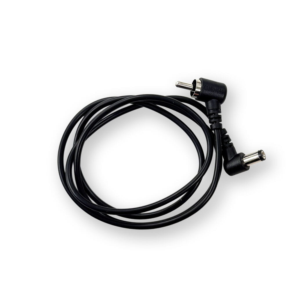 Type1のFlex Cableは黒色で、センターマイナスの5.5/2.1mm DCプラグを備えています。これは最も一般的なタイプで、BOSS規格とも呼ばれています。ほとんどの用途に対応するため、L字型プラグと10mmバレルを備えたこのフレックスケーブルをご用意しています。ケーブル長は15cm、30cm、50cm、80cmからお選びいただけます。電源ソケットが埋め込み式のペダルやその他の特別なニーズに対応するため、ストレート型プラグ(I字型)または12mmバレルの長めのケーブルもご用意しています。どちらもケーブル長は50cmです。