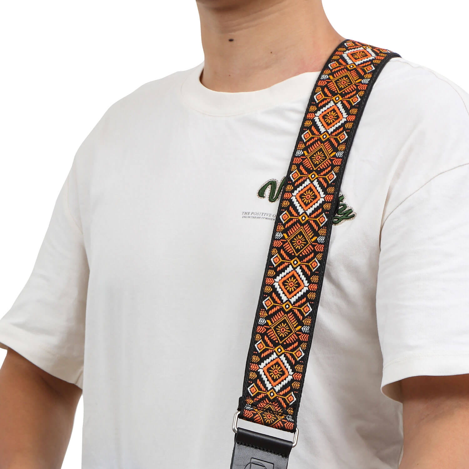 デザイン:エスニックなパターンが特徴で、多様なギターや服装に合わせやすい。