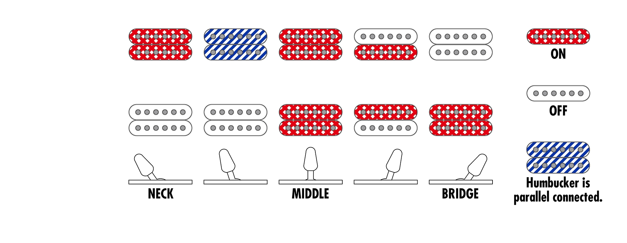 - 1 Volume, 1 Tone, 5-way lever switch