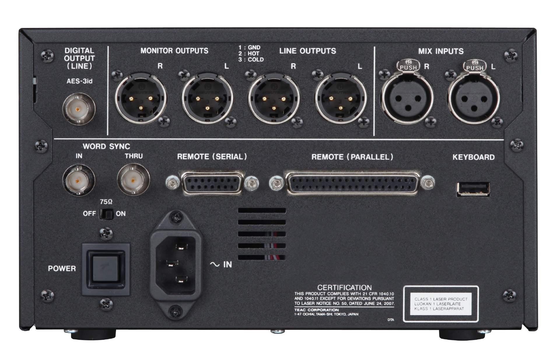 | CONTROL I/O | D-sub15ピン(SERIAL)、 D-sub37ピン(PARALLEL) | 2.5mm TRSジャック(REMOTE)、 D-sub9ピン(SERIAL)、 D-sub25ピン(PARALLEL) | |