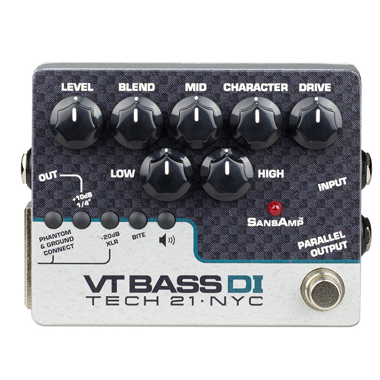 VT Bass DI は、クリーンで太いSVT サウンドから、地を揺らすようなダーティーなサウンドまで作り出します。どのようなセッティングでも、極太サウンドを簡単に叩き出せます。CHARACTER コントロールを駆使するとCrimsonやKing’s Xの図太いディストーション・サウンドも作り出せます。本機は100%アナログのSANSAMP回路により、アナログならではの太いサウンドとCHARACTERコントロールによるサウンド・メイクは新しい可能性を生み出します。